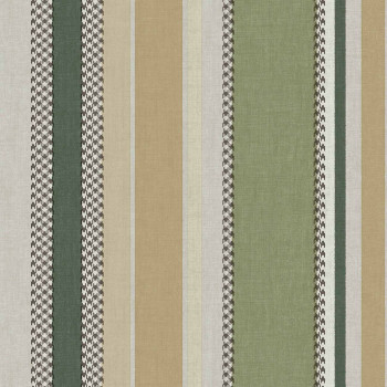 Luxuriöse Vliestapete mit Vinyloberfläche, Streifen in Grau, Beige und Grüntönen.