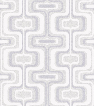 Luxuriöse Vliestapete mit Vinyloberfläche, spektakuläres geometrisches Retromuster in Weiß-, Grau- und Silbertönen. Das Innenfoto dient nur zur Veranschaulichung - verschiedene Farben.