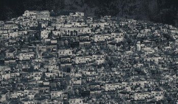 Luxus-Vlies-Fototapete mit geprägter Textiloberfläche, Muster Häuser, Stadt. Das Innenfoto dient nur zur Veranschaulichung - verschiedene Farben. Abmessungen B. 5,10 m x H. 3 m 5 Teile 1,02 m x 3 m