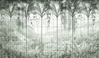Luxus-Vlies-Fototapete mit geprägter Textiloberfläche, Wintergartenmuster. Abmessungen B. 5,10 m x H. 3 m 5 Teile 1,02 m x 3 m