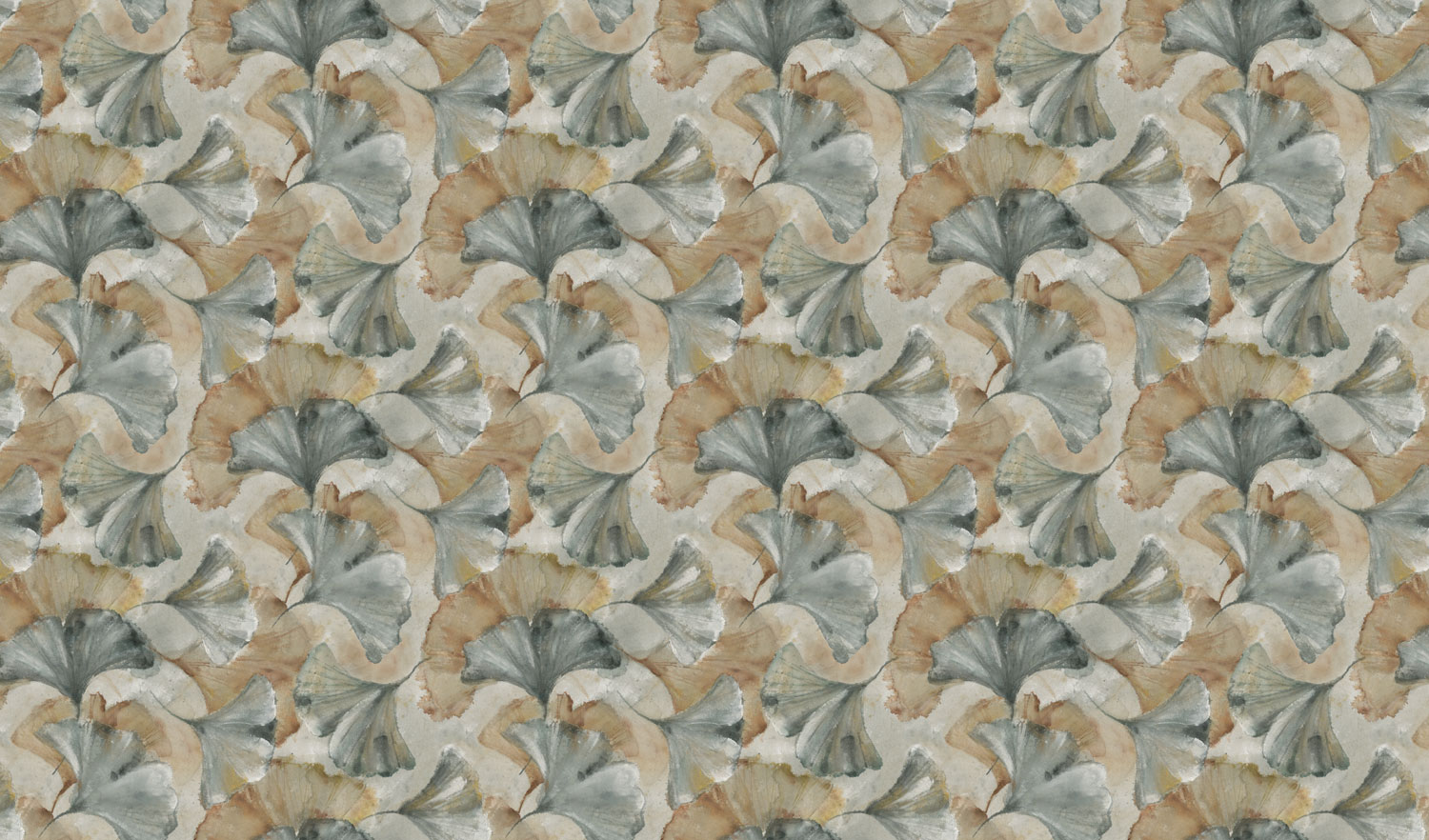 Luxus-Vlies-Fototapete mit geprägter Textiloberfläche, Ginkgoblätter-Motiv. Abmessungen B. 5,10 m x H. 3 m 5 Teile 1,02 m x 3 m
