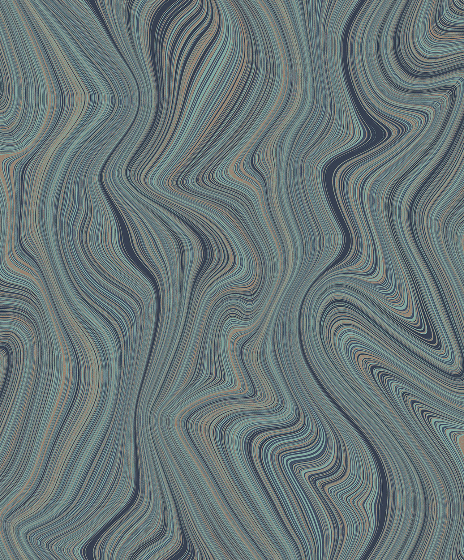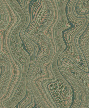 Vliestapete mit Vinyloberfläche, effektvollen Linien in Grün-, Blau- und Metallic-Silbertönen.