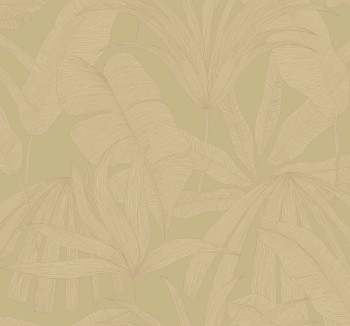 Glattes Braun / Hauch von Khaki-Vliestapete, braune Umrisse tropischer Palmenblätter.