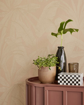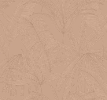 Glatte braun-rosa Vliestapete, braune tropische Palmenblätter.