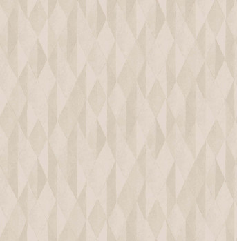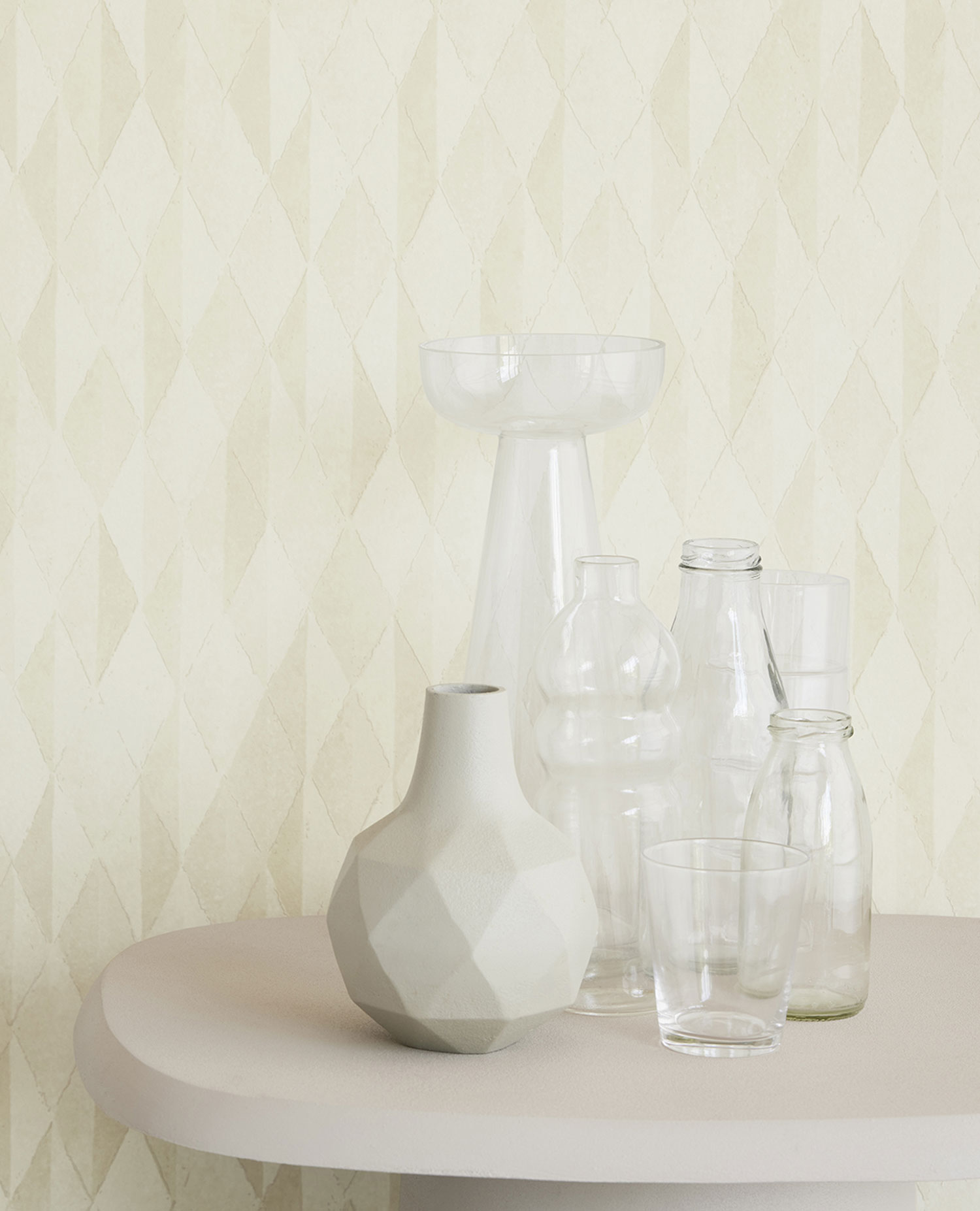 Cremefarbene, geometrische Vliestapete mit zart geprägten Rautenkonturen.