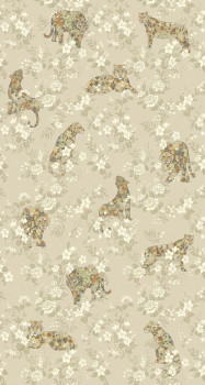 Beige Vlies-Fototapete, Motive von Katzen und Blumen. 2 Teile 75x280cm Die Fototapete hat ein durchgehendes Muster, für eine größere Breite müssen Sie einfach ein weiteres Stück kaufen.