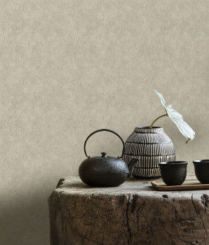 Vliestapete mit Vinyloberfläche, Stoffstruktur, Grau-Beige-Töne.