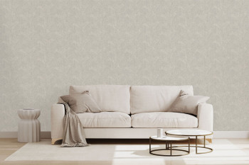Vliestapete mit Vinyloberfläche, grafisches Muster in Grau- und Graubeigetönen.