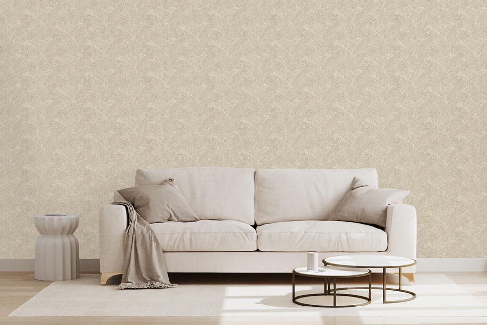 Vliestapete mit Vinyloberfläche, grafisches Muster in Beigetönen.