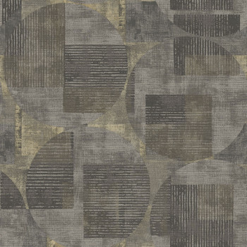Fein geprägte braun-grau-schwarze geometrische Vliestapete mit Vinyloberfläche.