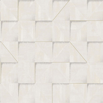 Fein geprägte, graue geometrische Vliestapete mit Vinyloberfläche, 3D-Fliesenimitation, goldene Details.