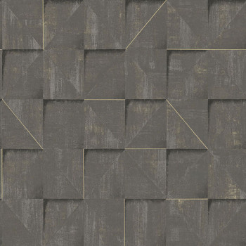 Fein geprägte, braune geometrische Vliestapete mit Vinyloberfläche, 3D-Fliesenimitation, goldene Details.