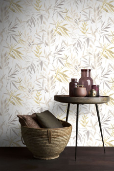 Weiße Vliestapete mit Bambusblättern, RE25190, Reflect, Decoprint
