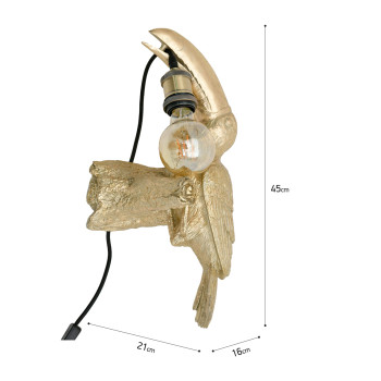 • ​​​​​​Die goldene Wandleuchte in Form eines Tukans ist eine originelle und stilvolle Ergänzung für Ihr Interieur. Diese Lampe verleiht Ihrem Raum ein exotisches und zugleich luxuriöses Aussehen.