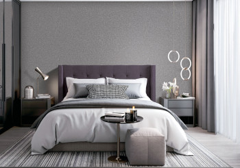 Luxuriöse Vliestapete mit einer Struktur aus kleinen Steinen mit einem dezenten Glanz in graublauer Farbe. Vliesunterlage, abwaschbare Vinyloberfläche.