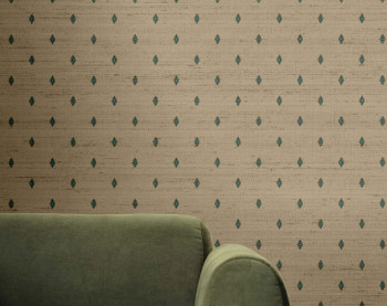 Luxuriöse grüne Vliestapete mit Vinyloberfläche, Imitation von feinem Stoff, goldenem Rautenmuster.