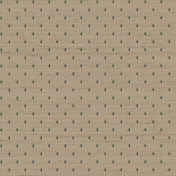 Luxuriöse braune Vliestapete mit Vinyloberfläche, Imitation von feinem Stoff, grünes Rautenmuster.