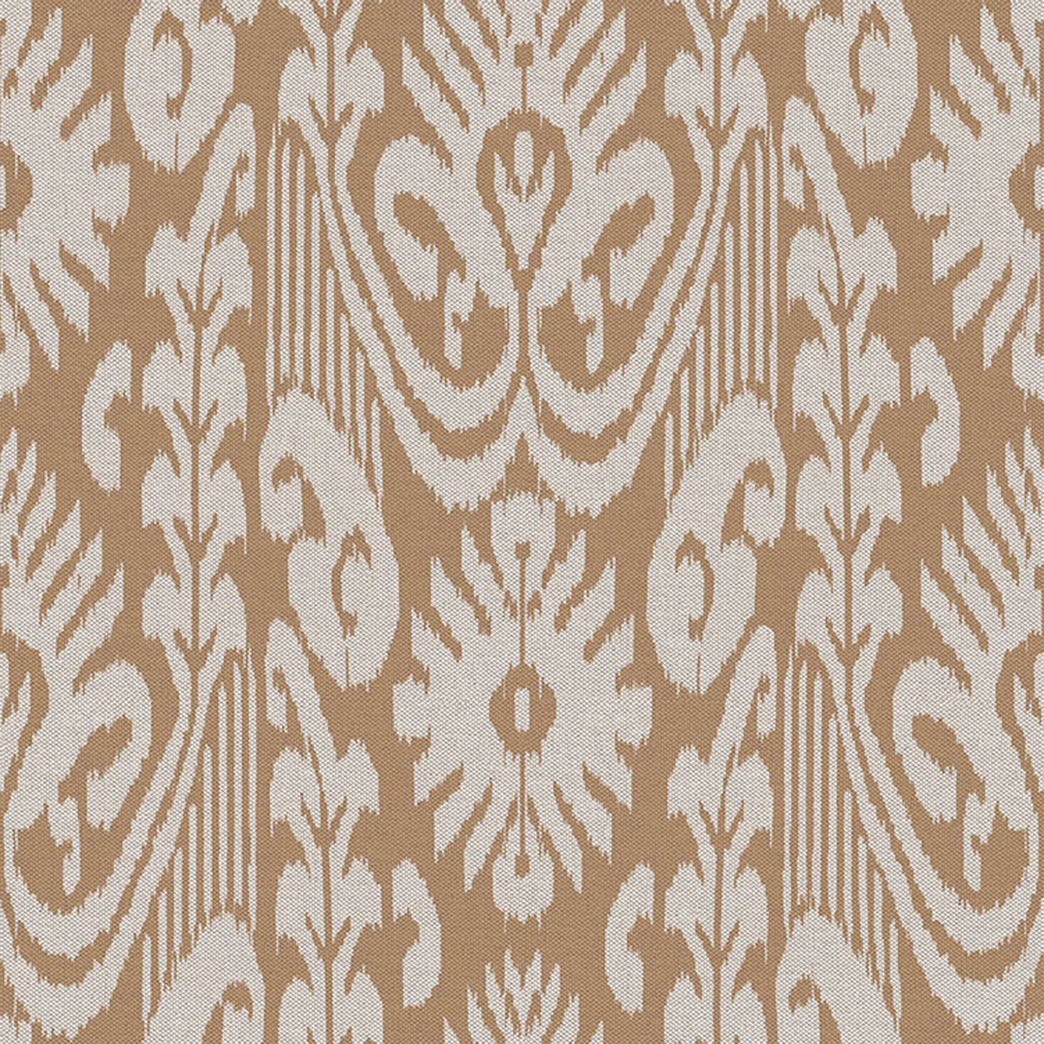Vliestapete mit Vinyloberfläche, an Wandteppiche erinnernde Muster, Beige- und Brauntöne, Stoffstruktur.