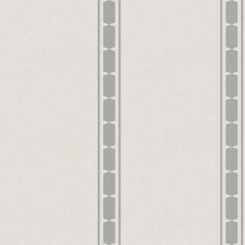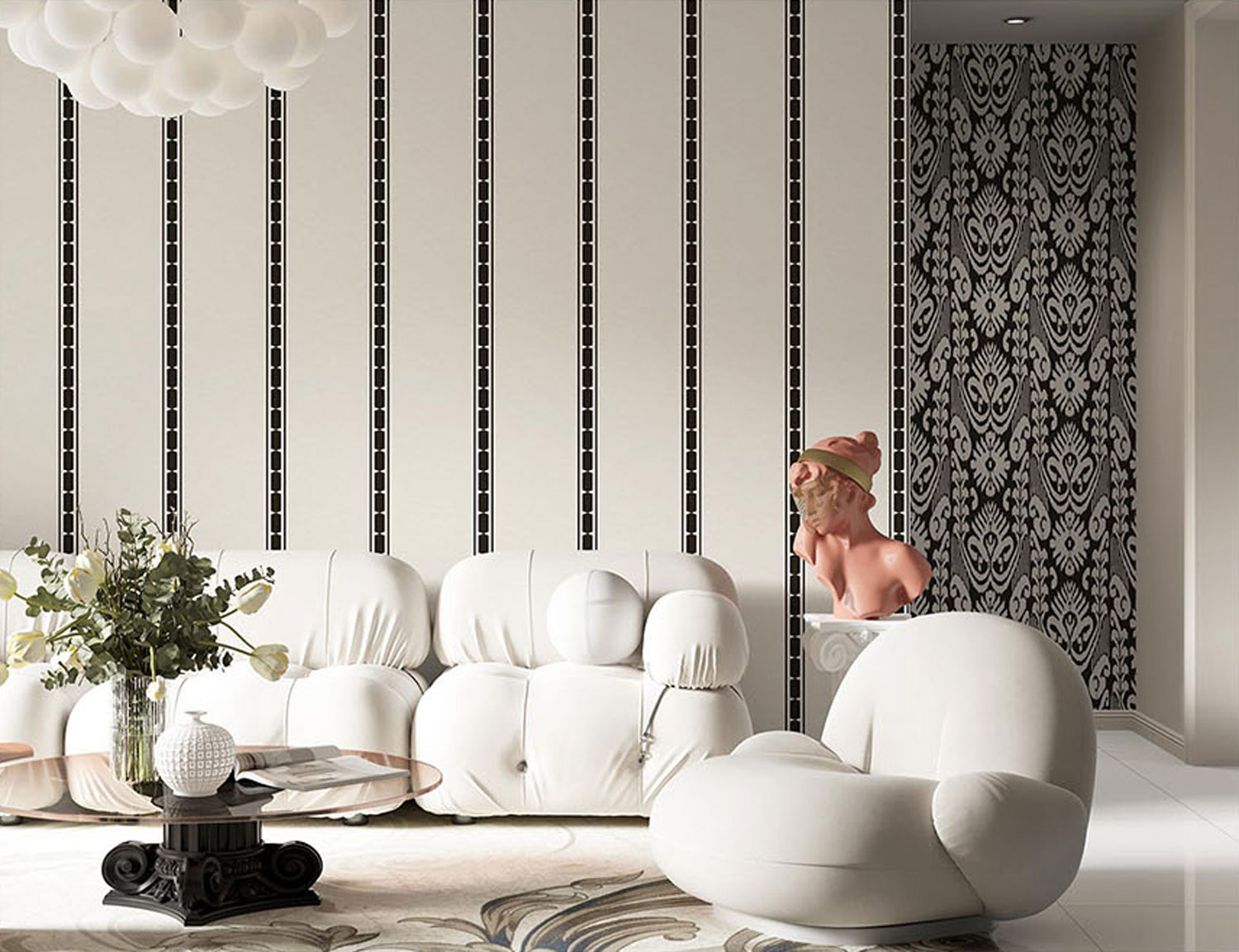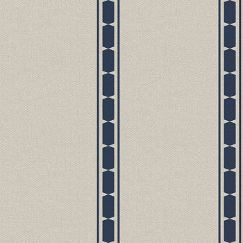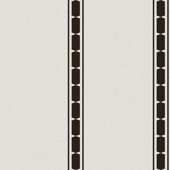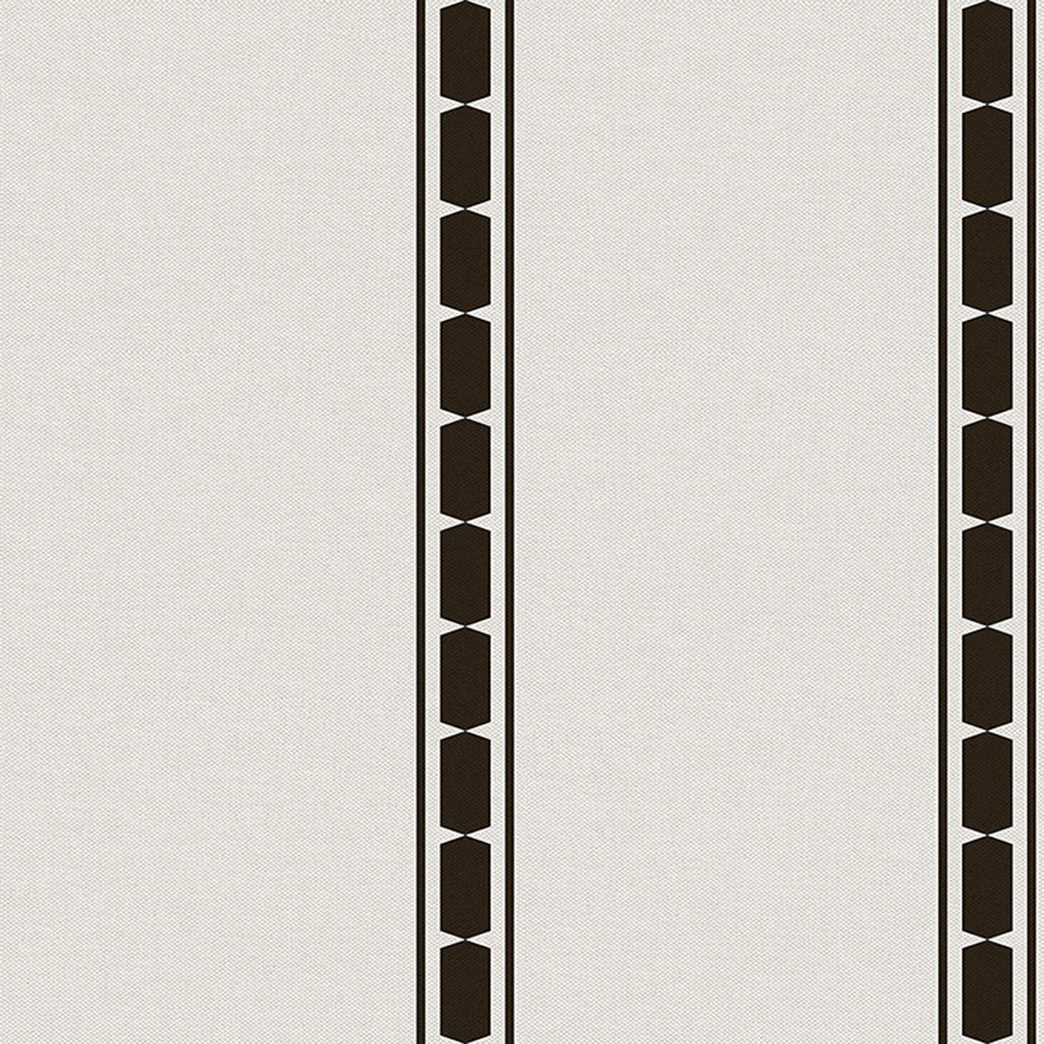 Cremefarbene Vliestapete mit Vinyloberfläche, schwarze dekorierte Streifen, Stofftextur.