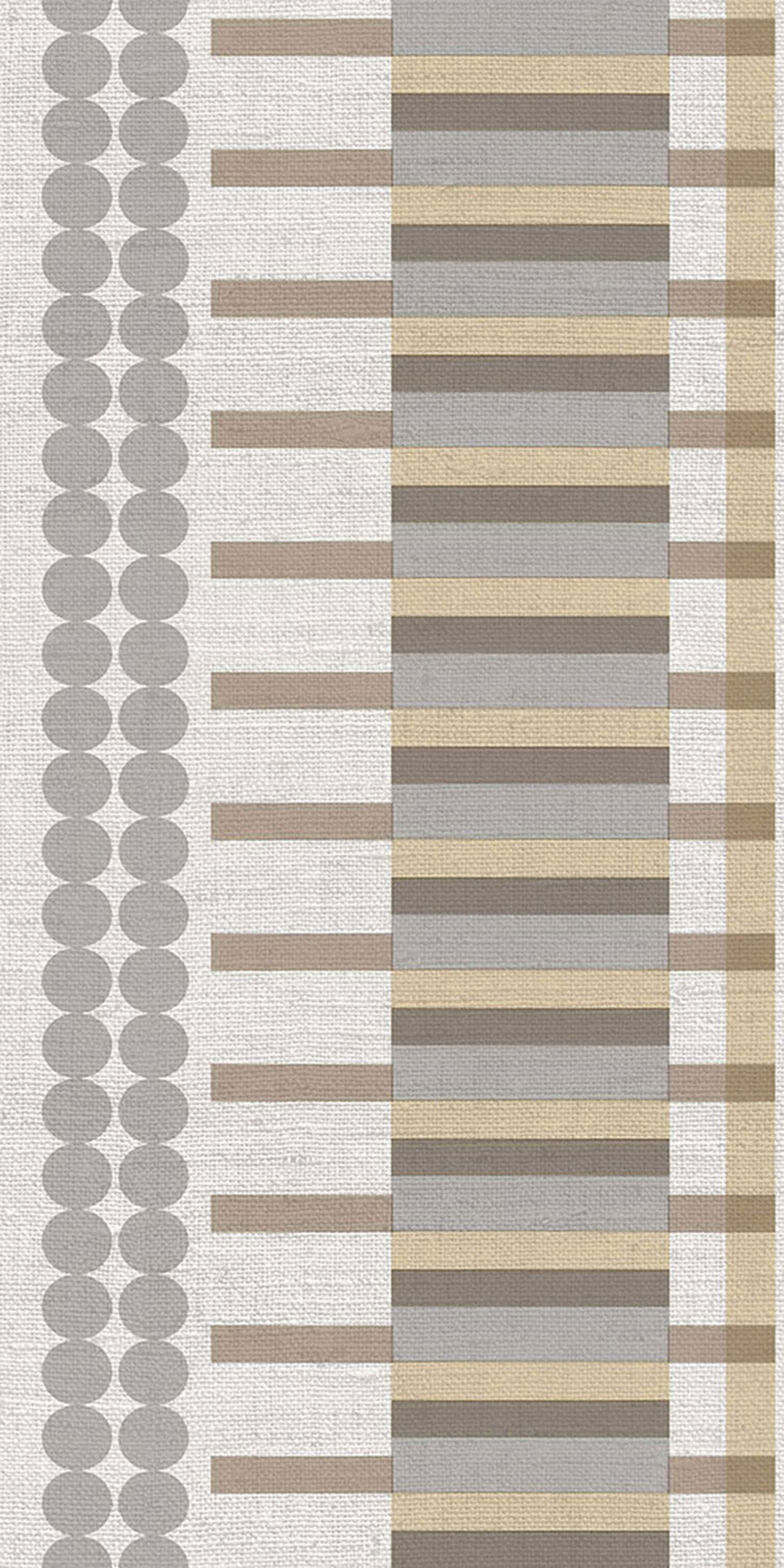 Geometrische Vliestapetenbordüre mit Vinyloberfläche, geprägte Textur. Grau-, Braun- und Beigetöne.