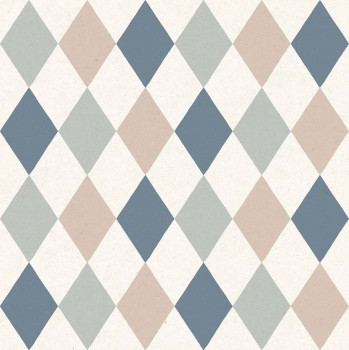 Vliestapete, Diamanten, Weiß-, Beige-, Dunkelblau- und Metallic-Blautöne.