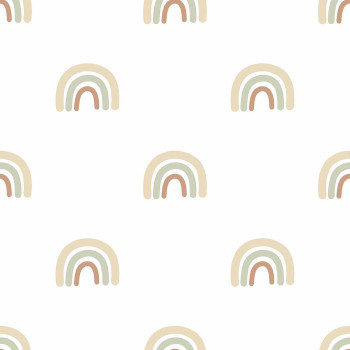 Weiße Vliestapete, Regenbogen in Braun-, Grün- und Goldbeigetönen.