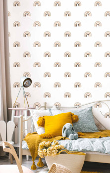 Weiße Vliestapete, Regenbogen in Braun- und Goldbeigetönen.