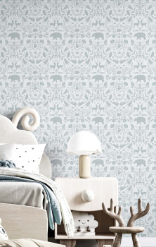 Blaue Kindertapete mit Tieren und Blumen, 17143, MiniMe, Cristiana Masi by Parato