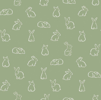 Grüne Vliestapete, weiße Umrisse von Hasen.