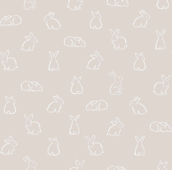 Graue Vliestapete, weiße Umrisse von Hasen.