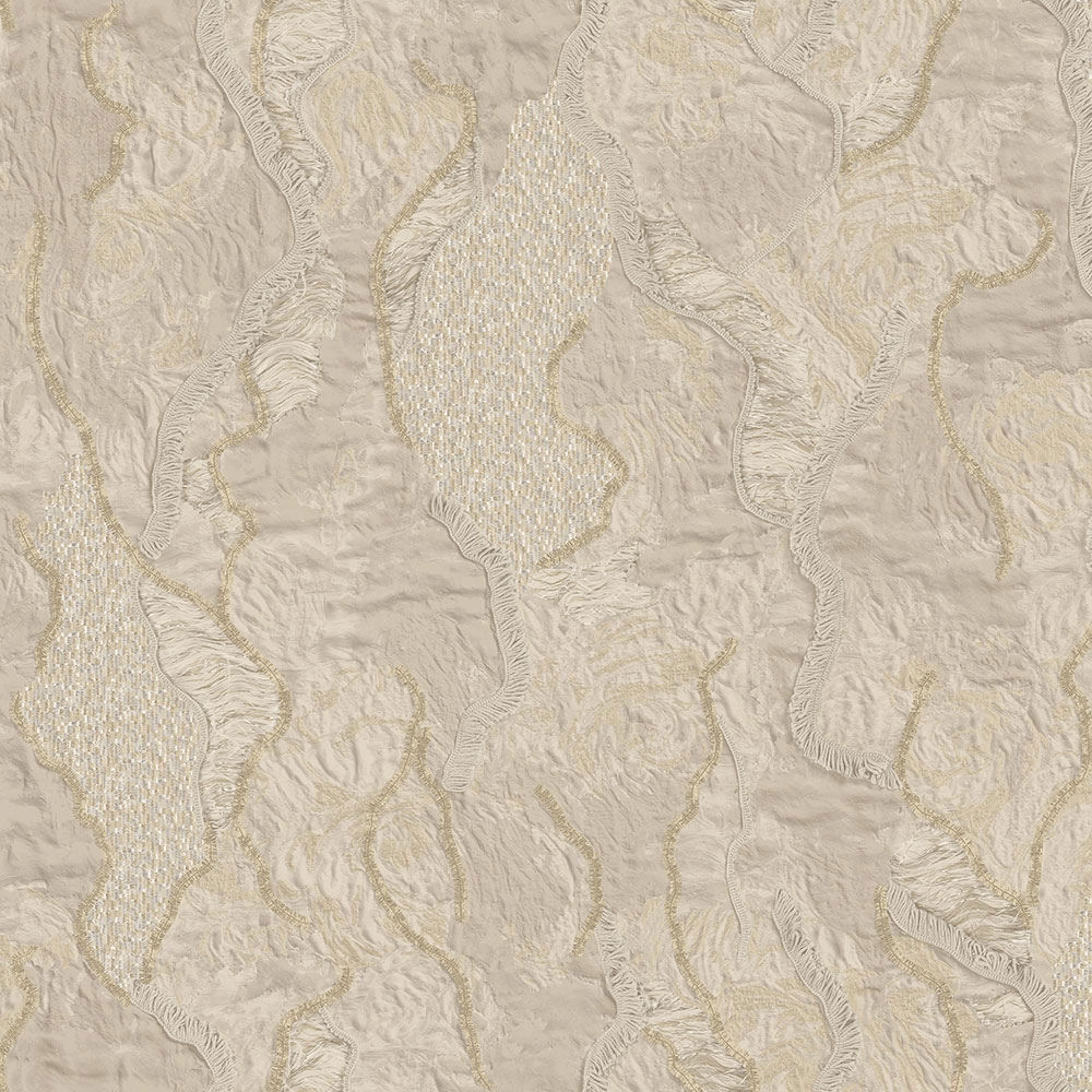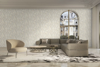 Luxuriöse beige-goldene Vliestapete mit Vinyloberfläche, Imitation von historischem Putz, Stuck.