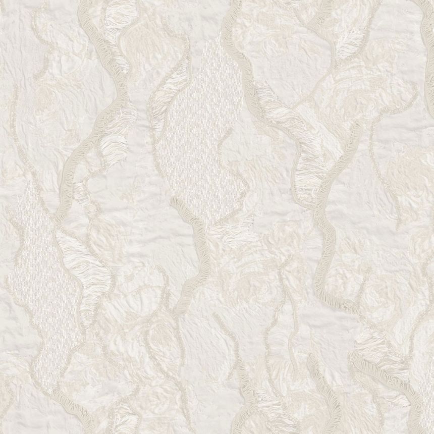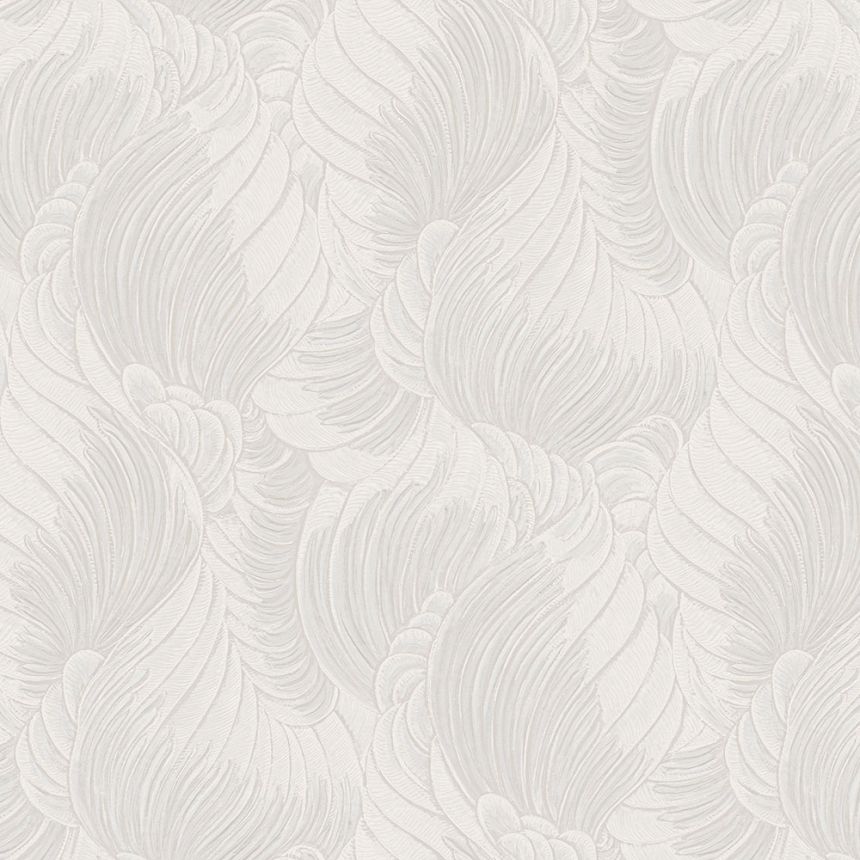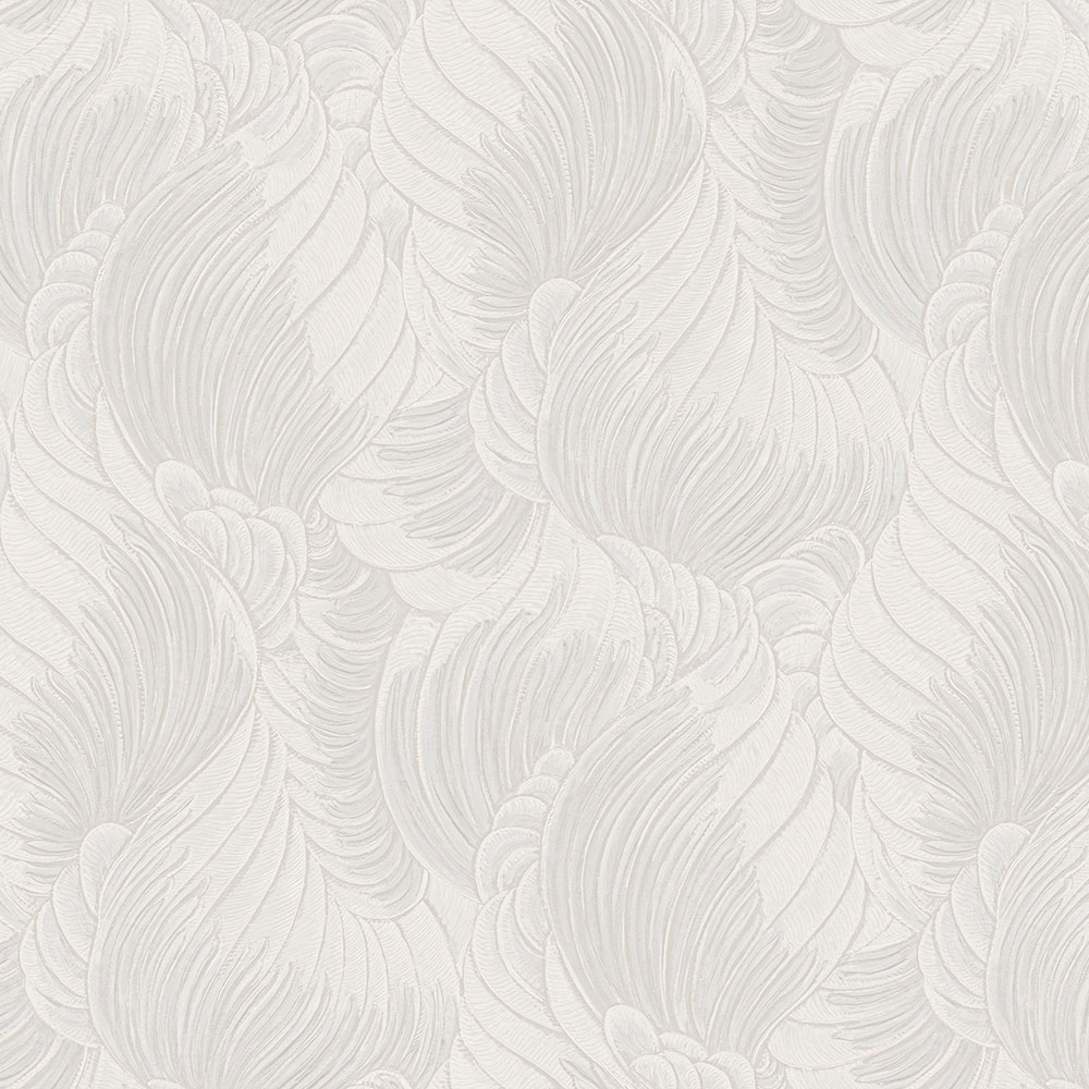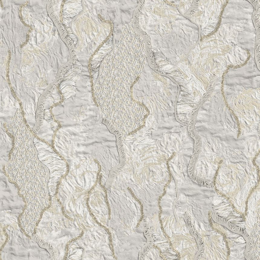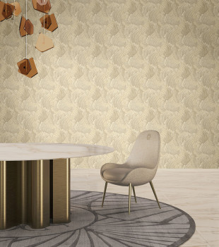 Luxuriöse cremefarbene Vliestapete mit Vinyloberfläche, geprägtes Muster mit Perlmuttreflexen.