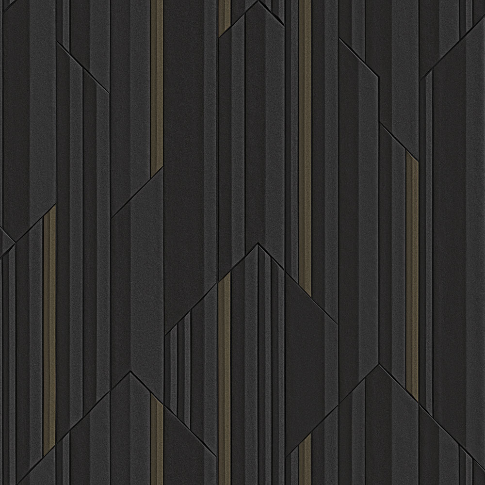 Luxuriöse, halbglänzende, geometrische Vliestapete mit Vinyloberfläche, in Braun- und Bronzetönen.