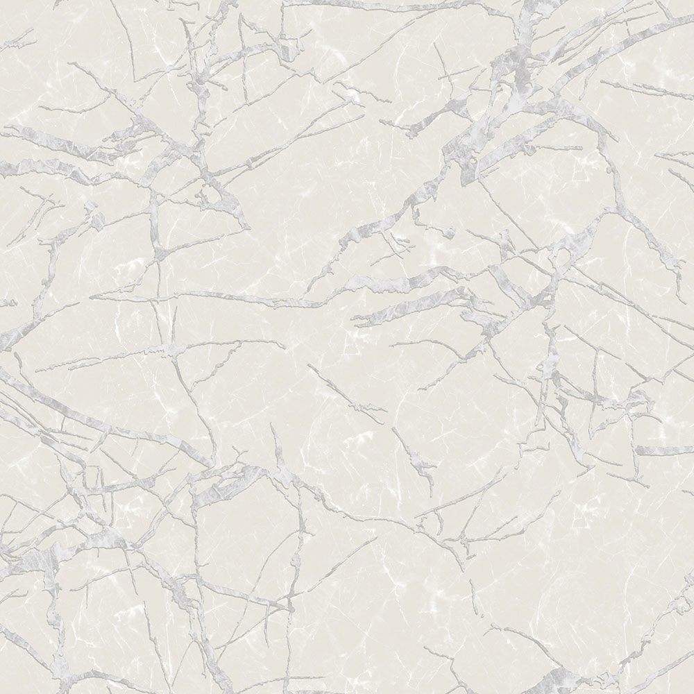 Luxuriöse, halbglänzende, Vliestapete mit Vinyloberfläche, creme-silberner Marmor..