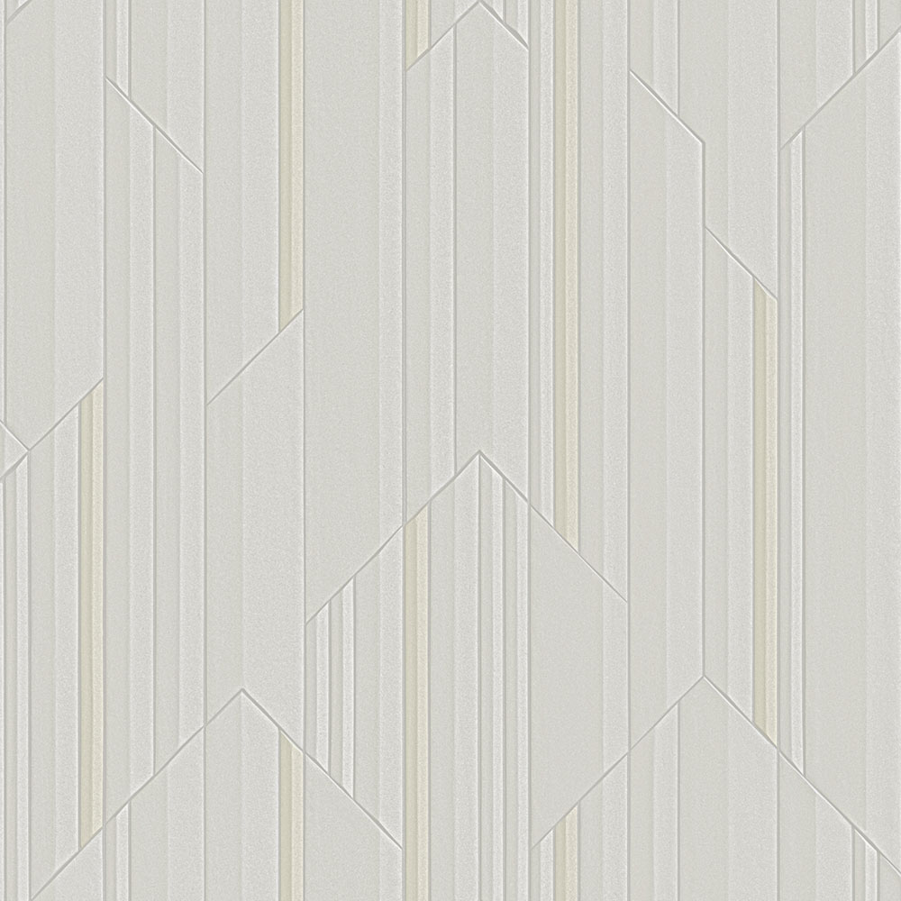 Luxuriöse, halbglänzende, geometrische Vliestapete mit Vinyloberfläche, Grau- und Goldbeigetönen.