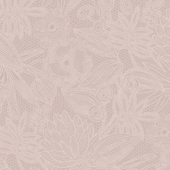 Zart geprägte, rosa Vliestapete, Spitzenmuster.