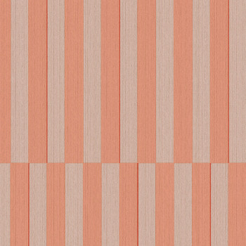 Zart geprägte gestreifte Vliestapete im Retrostil, Rosatöne, manchmal rote Linien.
