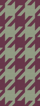 Vlies-Fototapete/Tapetenpaneel, Hahnspurmuster in Burgunder- und Pistazientönen.