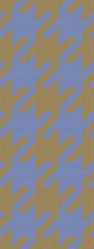 Vlies-Fototapete/Tapetenpaneel, Hahnspurmuster in den Farbtönen Kornblumenblau und Olivgrün.
