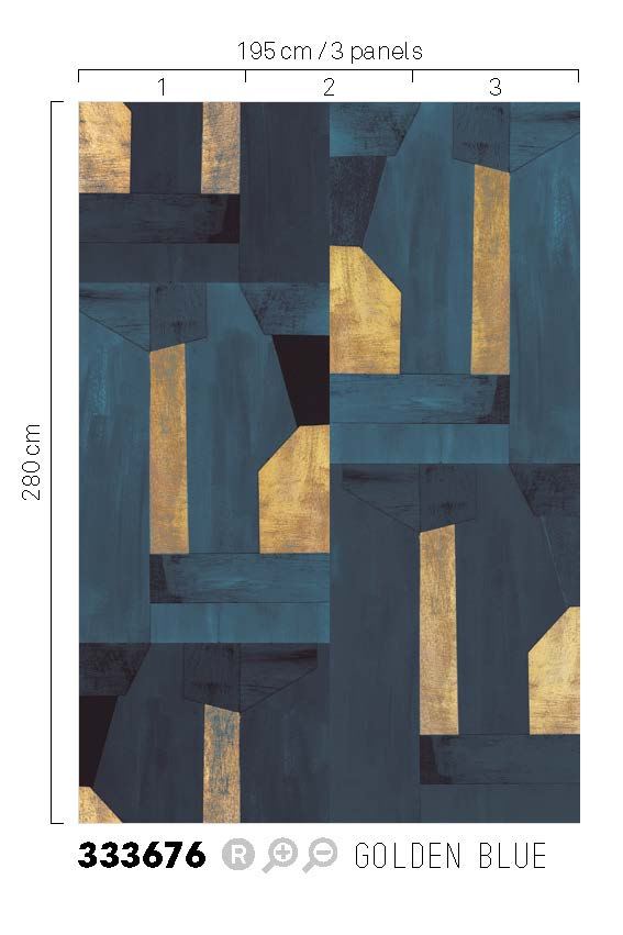 Vlies-Fototapete/Tapetenpaneel, halbglänzende Blau- und Goldtöne mit Patina.