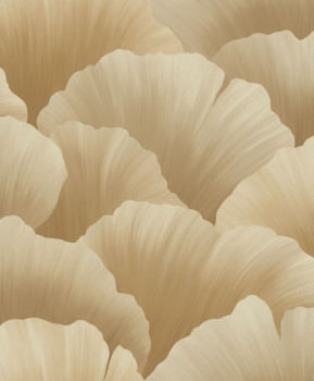 Geprägte Vliestapete, Ginkgoblätter in Braun-Beige-Tönen.