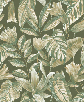 Grüne Vliestapete mit Blumen und Blättern, BZ3106, Belize, Grandeco
