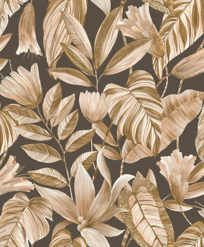 Braune Vliestapete mit Blumen und Blättern, BZ3108, Belize, Grandeco