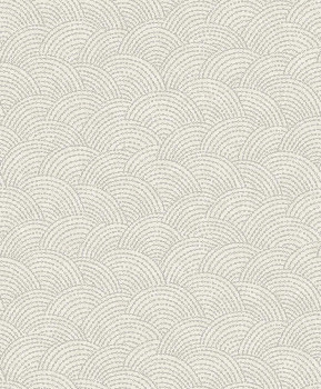 Graue Vliestapete, silbernes geometrisches Bogenmuster.