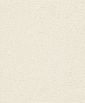 Cremefarbene Vliestapete, halbglänzend, leicht geprägt, Wellenmuster.