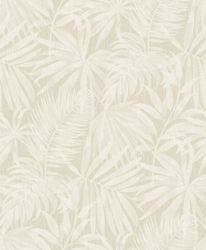 Vliestapete, Blättermotive, Cremetöne, helles Beige, teilweise mit einem Hauch von Grau, melierte Struktur.