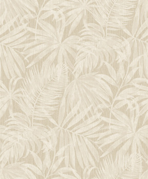 Vliestapete, Blättermotive, Beigetöne, melierte Struktur.