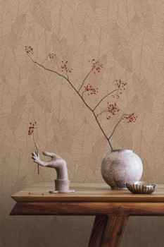 Glatte braune Vliestapete, Blattkonturen.
