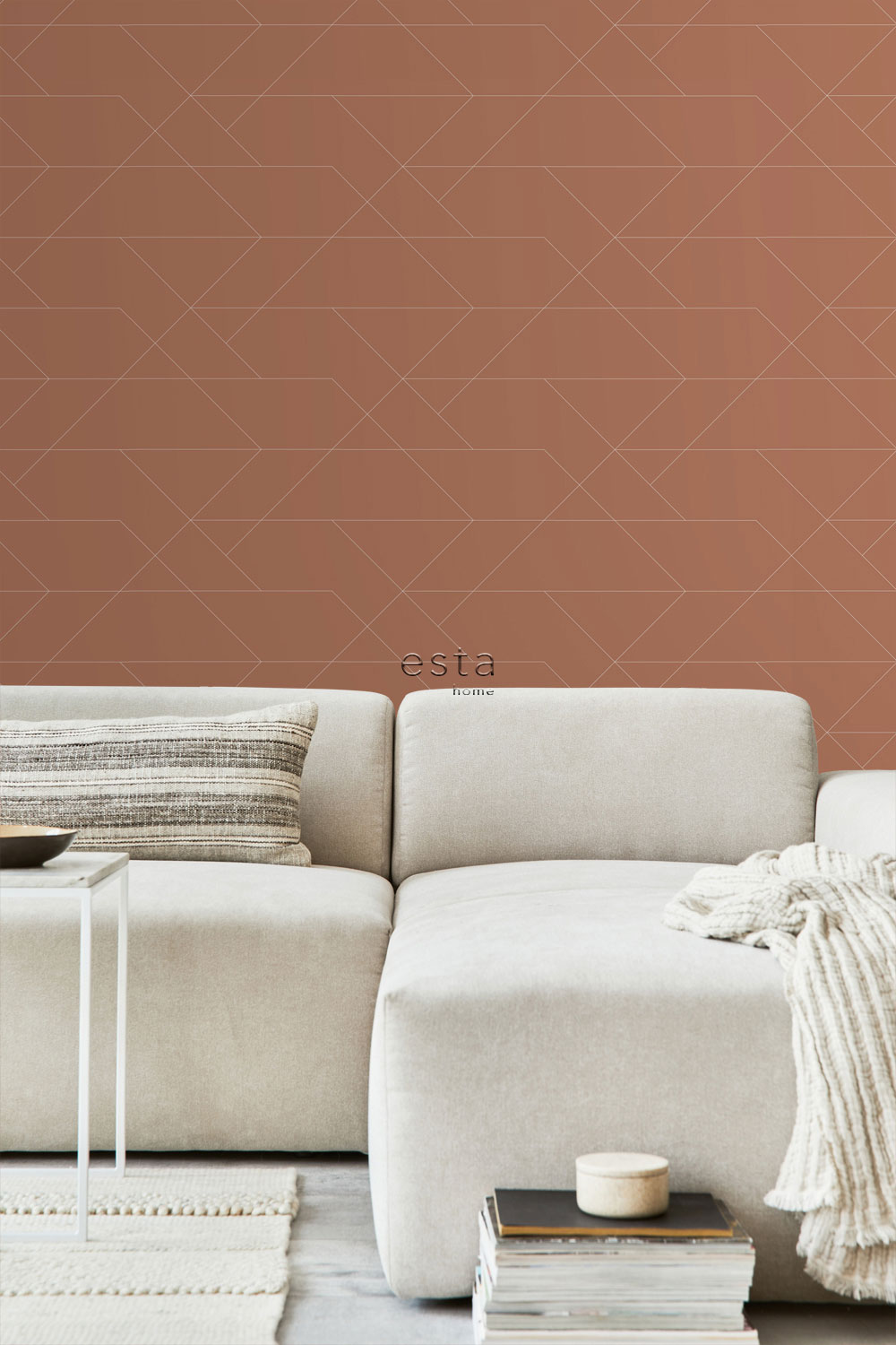 Glatte braune Vliestapete, weiße Linien erzeugen geometrische Muster.