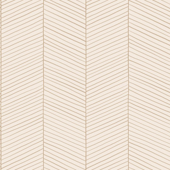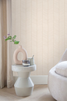 Glatte, cremefarbene Vliestapete mit geometrischem Muster.